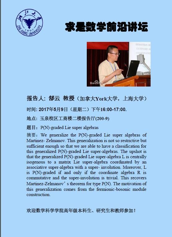 学术科研 学术团队 学术活动 学术会议 学术报告 讨论班 School Colloquium 信息公告 文件汇编 2017 华体会在线 > (5月9日)求是数学前沿论坛之郜云教授讲座 来源:华体会(中国) 发布时间:2017-05-07 954