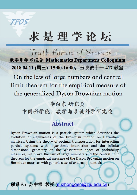 学术科研 学术团队 学术活动 学术会议 学术报告 讨论班 School Colloquium 信息公告 文件汇编 2018 华体会在线 > On the law of large numbers and central limit theorem for the empirical measure of the generalized Dyson Brownian motion 来源:华体会(中国) 发布时间:2018-04-08 627