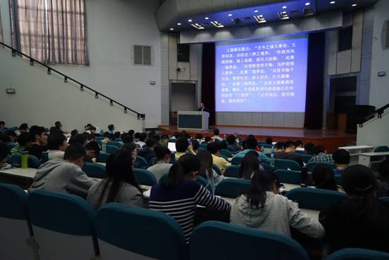 接着,严加安院士又高屋建瓴地向同学们展示了数学和诗歌的一些共性。首先,二者的源头都是自然和社会,都需要诗人或数学家对日常生活有着细微的观察和感知;而且,二者都追寻着精炼,只不过诗歌的精炼体现在文字的简洁之上,而数学的精炼更多的体现在公式和定理的精简之上。其后,严加安院士又进一步以欧拉公式、四色定理、庞加莱猜想等为例,具体而详细地说明了数学之美。数学是对自然规律的抽象提炼,数学之美是自然规律之美的本质反映。
