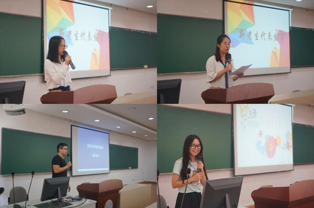 此外,研究生老生代表杜秋宁同学和新生代表侯冲聪同学分别发言,对竺可桢校长的两个问题做出了自己的回答,表达了对数院再创辉煌的美好祝愿;研博会主席迟明宇同学、校友会主席胡璨同学、讲师团团长杜秋宁同学分别进行宣讲,纳新活动将为学院学生组织注入一批新鲜力量。