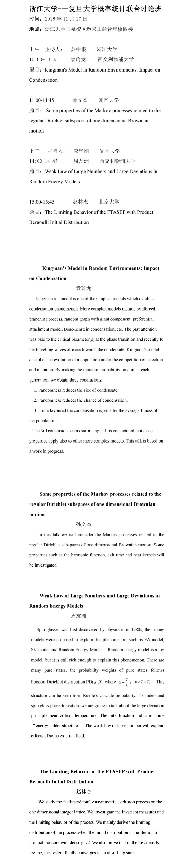 学术科研 学术团队 学术活动 学术会议 学术报告 讨论班 School Colloquium 信息公告 文件汇编 讨论班 华体会在线 > 浙江大学---复旦大学概率统计联合讨论班 来源:华体会(中国) 发布时间:2018-11-04 1018 联系人:赵敏智 zhaomz@zju.edu.cn