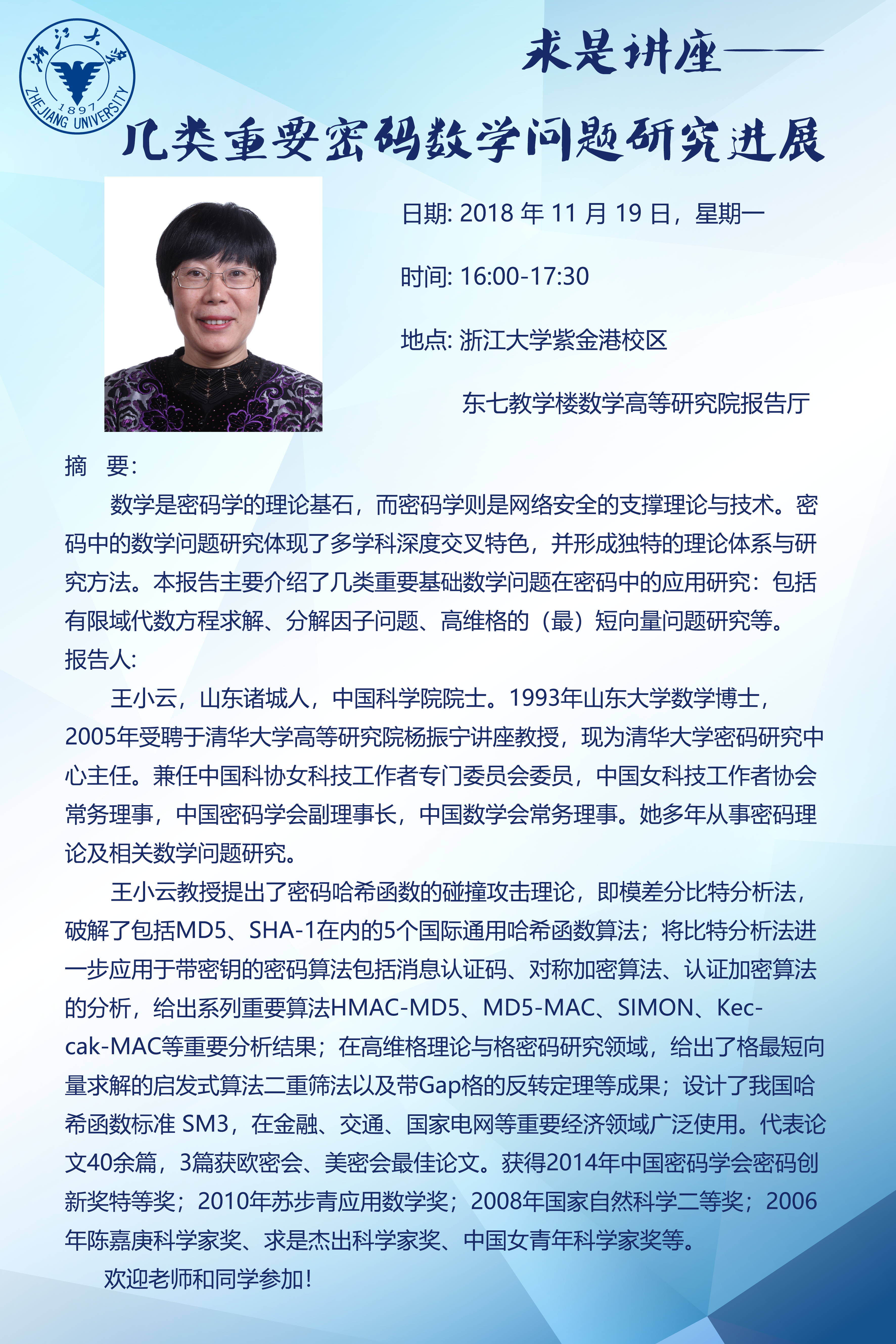 学术科研 学术团队 学术活动 学术会议 学术报告 讨论班 School Colloquium 信息公告 文件汇编 2018 华体会在线 > 求是讲座――几类重要密码数学问题研究进展 来源:华体会(中国) 发布时间:2018-11-16 716