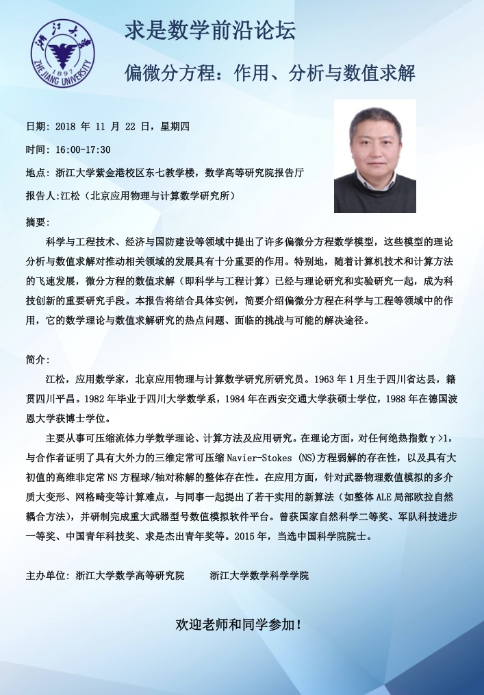 学术科研 学术团队 学术活动 学术会议 学术报告 讨论班 School Colloquium 信息公告 文件汇编 2018 华体会在线 > 求是数学前沿论坛之江松院士讲座 来源:华体会(中国) 发布时间:2018-11-20 793