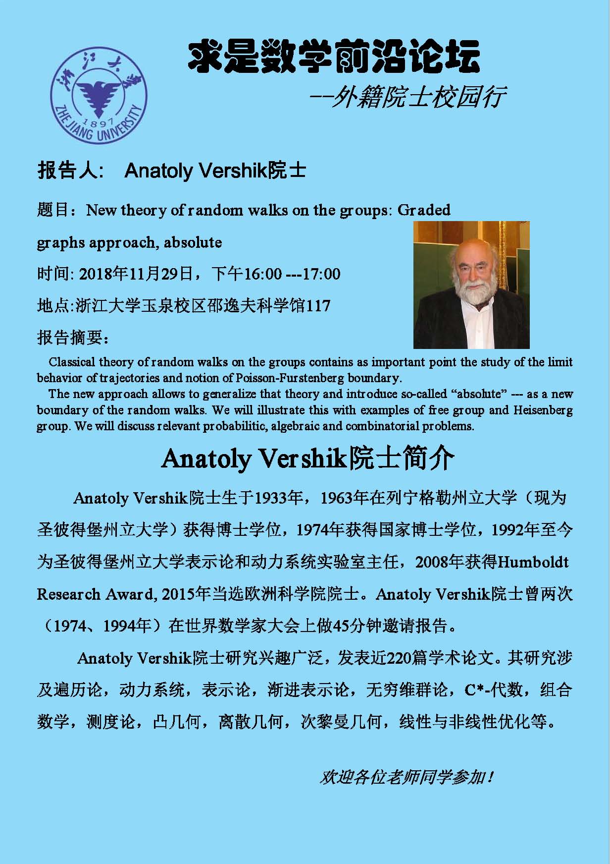 学术科研 学术团队 学术活动 学术会议 学术报告 讨论班 School Colloquium 信息公告 文件汇编 2018 华体会在线 > 求是数学前沿论坛之Anatoly Vershik院士讲座 来源:华体会(中国) 发布时间:2018-11-23 1291