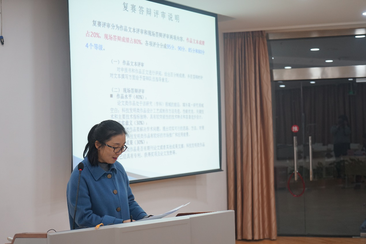 正式答辩开始前,姚晨老师为本次复赛致辞。她向在座的老师同学们介绍了挑战杯竞赛并感谢各位评委老师在百忙之中莅临指导希望参赛队伍通过答辩展示优秀项目,在交流中相互学习、共同提高,祝愿本届比赛圆满成功!