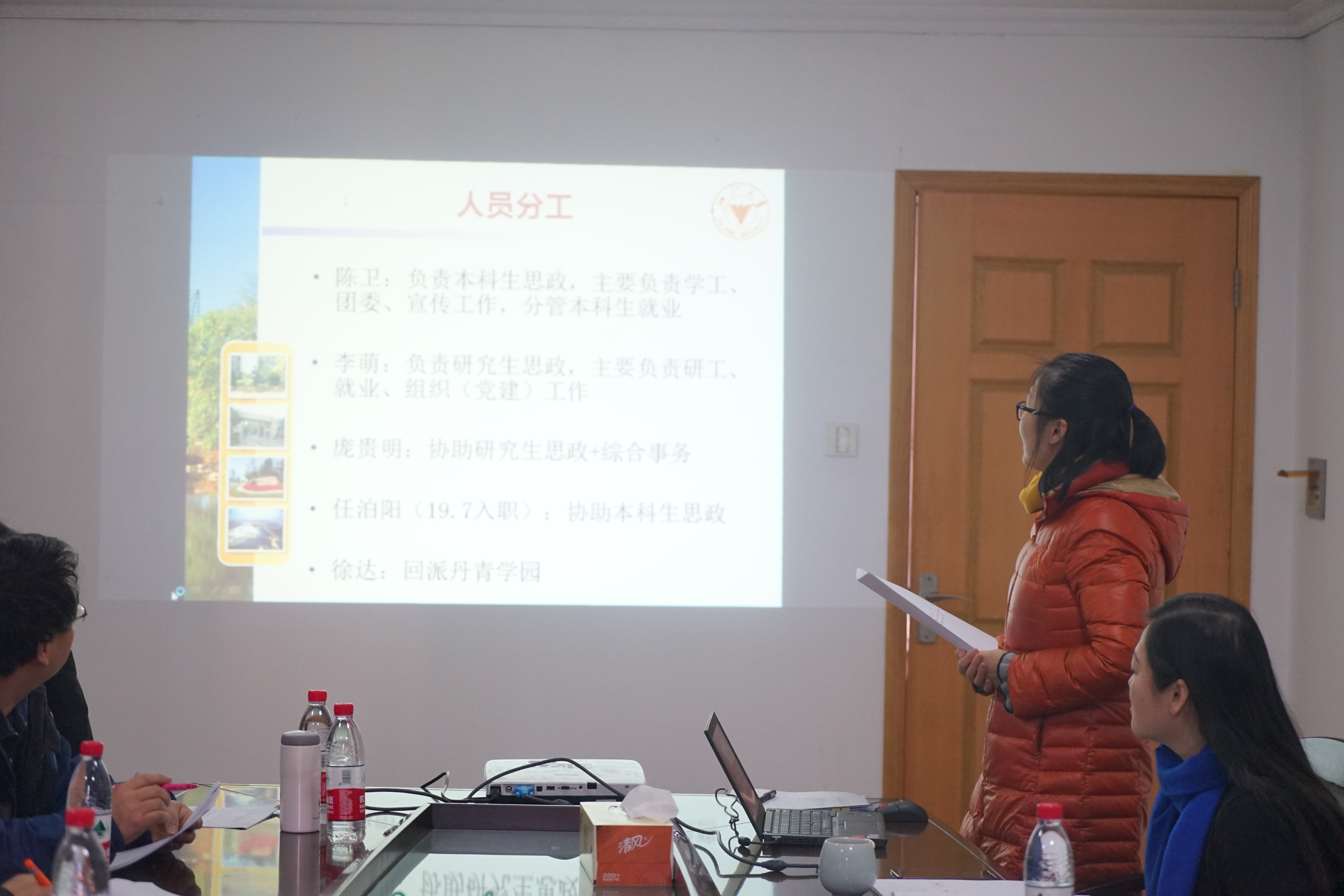 学院党委副书记姚晨老师对各位班主任和德育导师在百忙之中仍积极主动参与学生管理工作表示衷心的感谢。姚晨老师结合年末学生工作新形势,给各位老师讲解了具体工作思路与工作重心,嘱托大家提高意识,与思政线老师一起为学生的健康成长保驾护航。