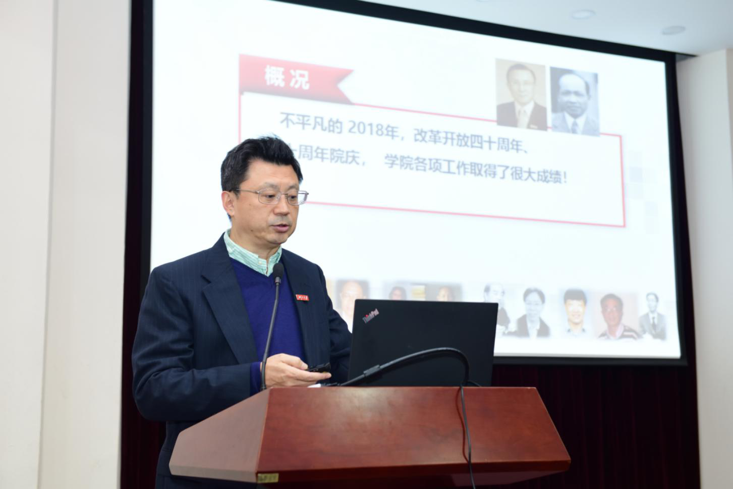 在集体奏唱国歌声中,大会拉开序幕。包刚院长首先对华体会(中国)2018年的工作进行了全方位总结,他从党建工作、院庆系列活动、教学科研工作、国内外影响力等方面回顾了学院在过去一年中取得的诸多成绩与进步。同时也结合学院现状,分析阐述了学院在“双一流”建设中所面临的形势和任务,并对学院未来的发展做出了进一步的规划和展望。