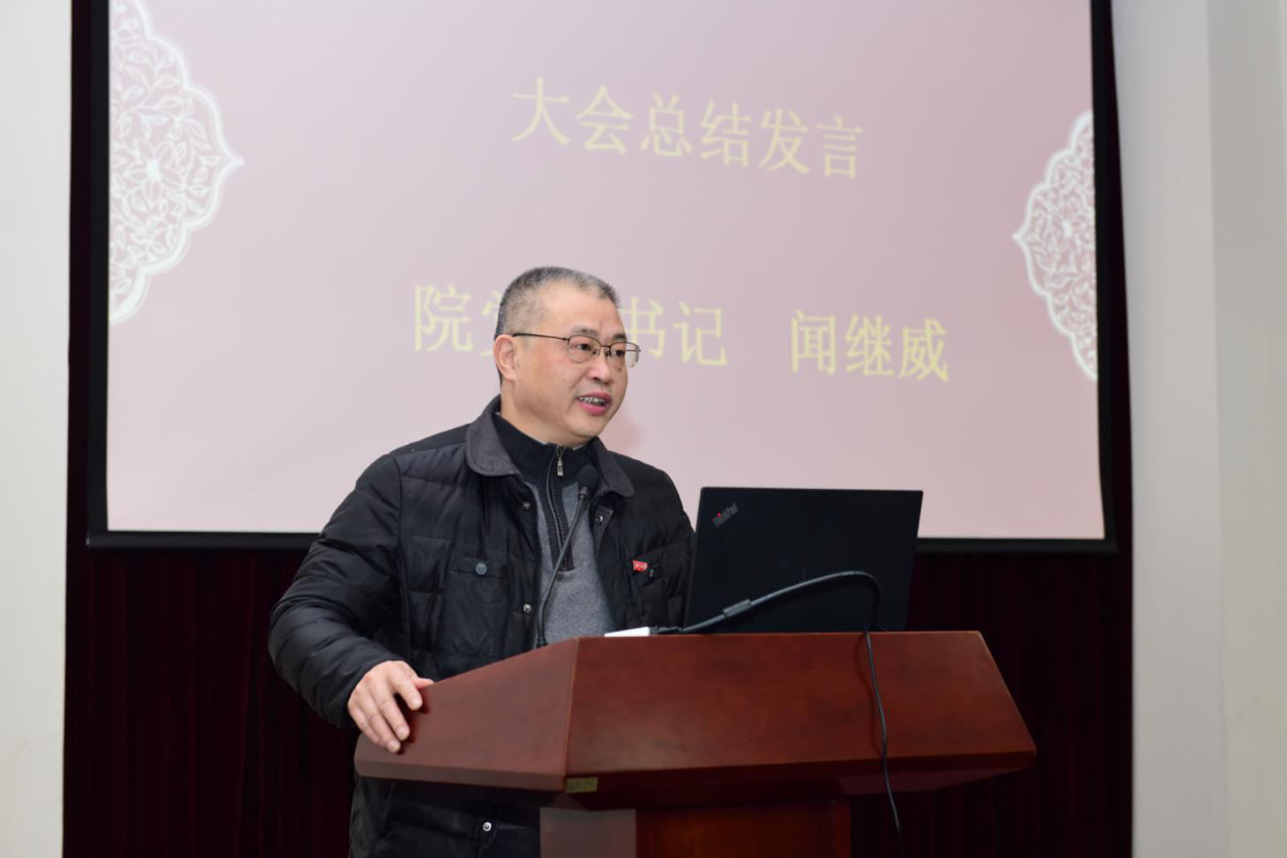 最后,闻继威书记作总结讲话,他重点汇报了学院在2018年取得的各突破性进展,分析了目前工作面临的机遇和挑战,提出了下一年的工作思路和要点。闻书记在肯定学院工作的基础上,感谢了老师、同学和广大校友的辛勤付出,并代表学院领导班子向大家恭贺新春。