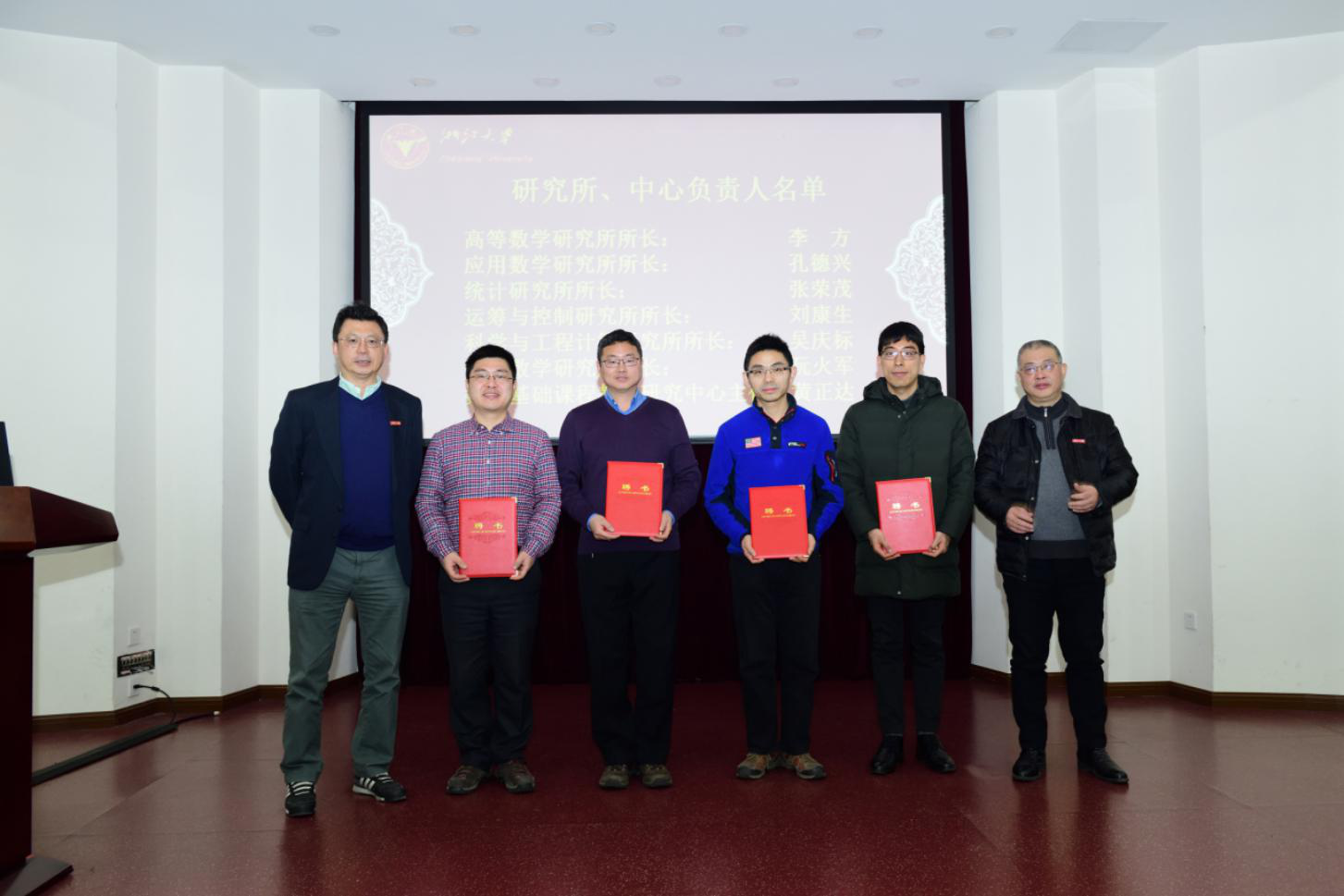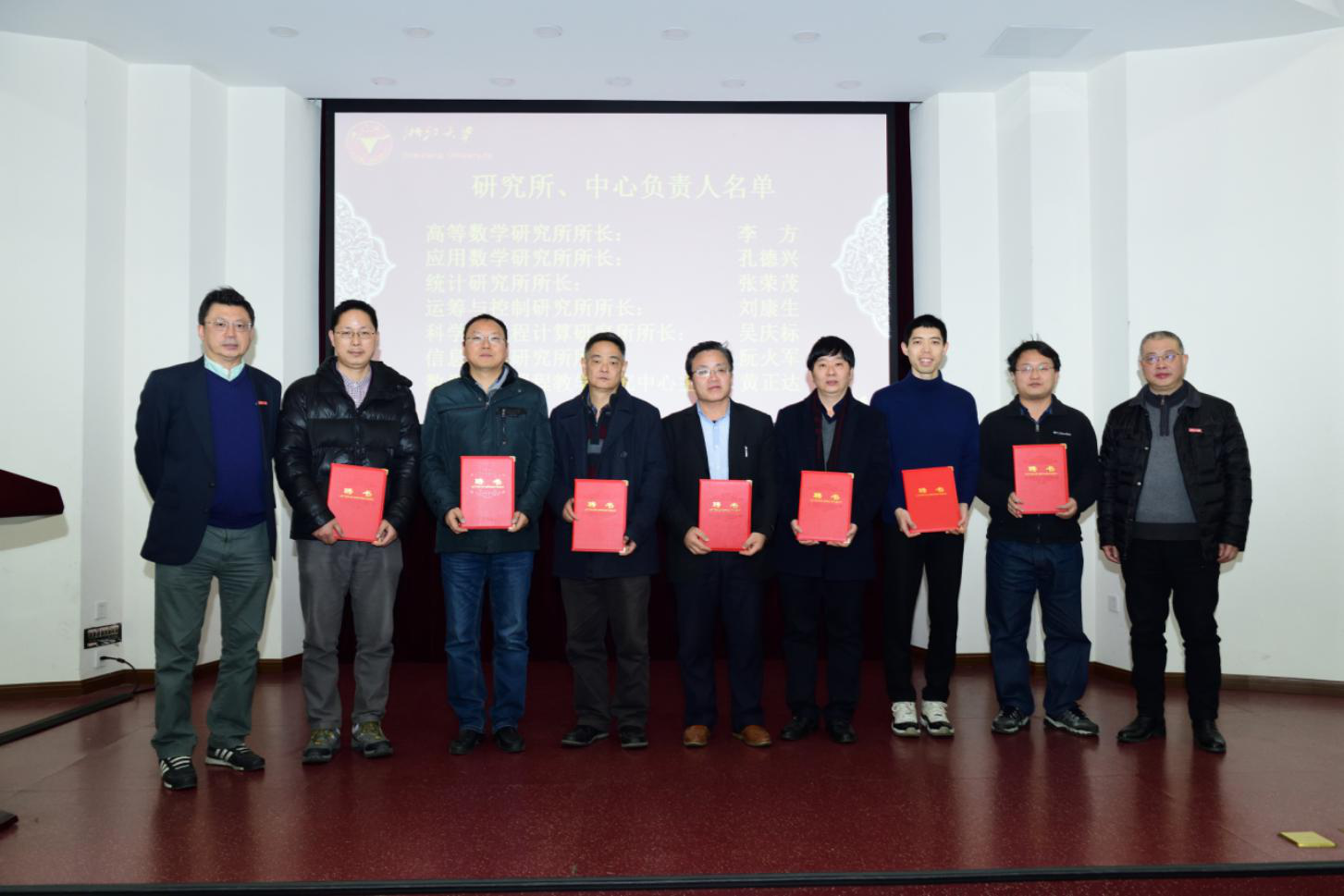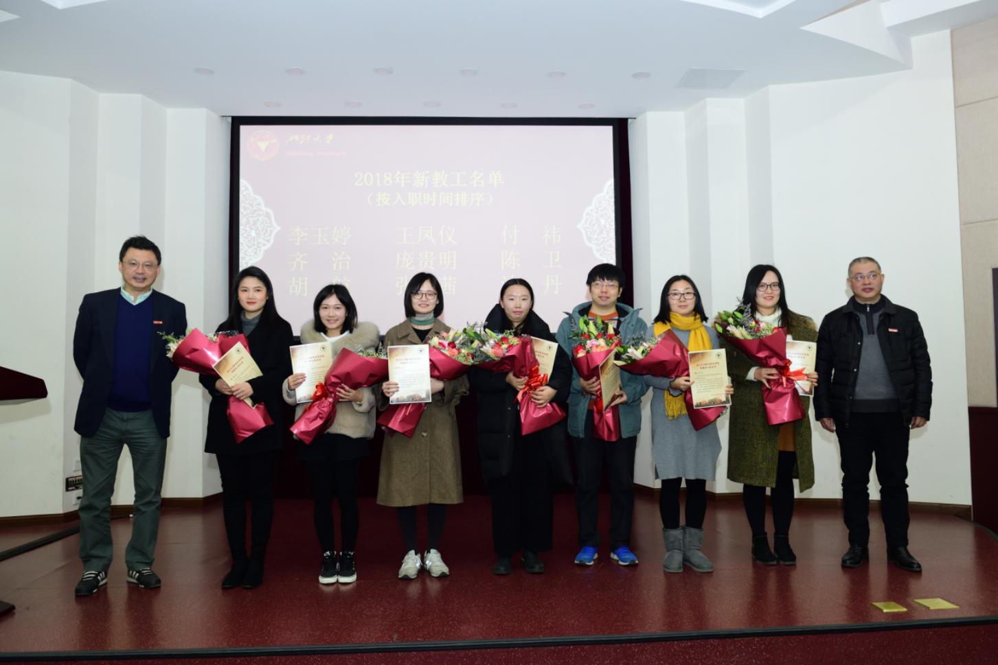随后,包刚院长和闻继威书记为学院拟聘任的四名系主任、六名研究所所长及一名教学中心主任颁发聘书,并为2018年学院新教工发放入职证书。
