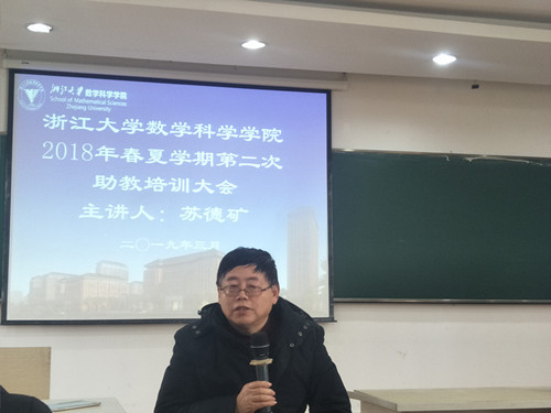 2019年3月8日下午,华体会在线在逸夫工商楼四楼会议室召开了2018-2019学年春夏学期第二期研究生助教培训会议。本期助教培训会议主讲人为“学生最喜欢的浙江大学老师”之一、浙江大学微积分课程负责人苏德矿教授。 学院教务科熊晶蕾、付�老师以及所有2018-2019学年春夏学期研究生助教参与了本次培训会议。