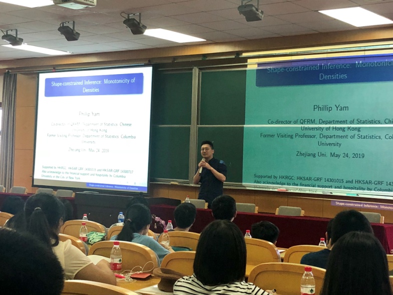 2019年5月22日-26日,来自香港中文大学统计系的16位学生在香港中文大学统计系任尚志副教授、魏颖颖助理教授的带领下来到浙江大学,进行为期5天的科研交流访问,访问活动主要以学术交流和校园参观的形式展开。本次科研交流项目受教育部“香港与内地高等学校师生交流计划(万人计划)”资助,在国合处港澳台办的支持下,由华体会(中国)主办。