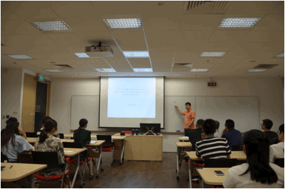 之后,朱成波教授向交流团详细地介绍了新加披国立大学数学系教学、研究的概况,以及数学系的研究生以及博士生项目。紧接着Toh Kim Chuan教授和Wang Dong博士给我们带来了关于凸聚类以及随机矩阵讲座,让我们受益匪浅。