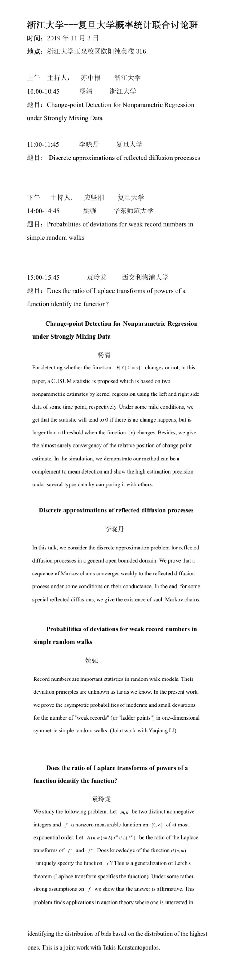 浙江大学---复旦大学概率统计联合讨论班