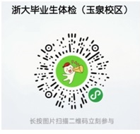 1、体检仅接待无发热、呼吸道症状的浙江大学蓝码状态学生,玉泉校区和紫金港校区采用预约制,请微信扫二维码预约体检时间。