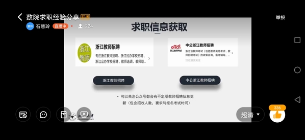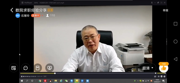 为贯彻学校党委会和就业工作会精神,2020年4月18日,华体会(中国)求职生涯发展专题分享会通过钉钉直播顺利举行,会议由学院辅导员石慧玲主持,邀请了就业指导与服务中心综合办公室副主任蔡艳婷老师,以及已获得不同工作领域offer的优秀数院学子进行技能指导和经验分享。他们是:签约腾讯科技(深圳)有限公司的甘伟男、签约淘宝(中国)软件有限公司的高璇、签约杭州市余杭高级中学的熊焕焕。
