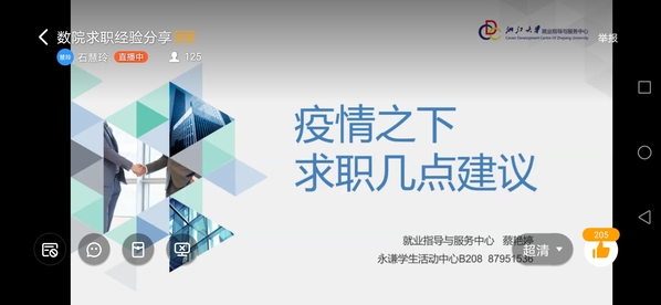 经过两个半小时的“干货放送”,华体会(中国)求职生涯发展专题分享会圆满结束。此次分享会为学院广大同学解决了在就业、求职过程中可能面临的一些重要问题,为数院学子未来展现学院风采、贡献青春力量提供了有力指导。
