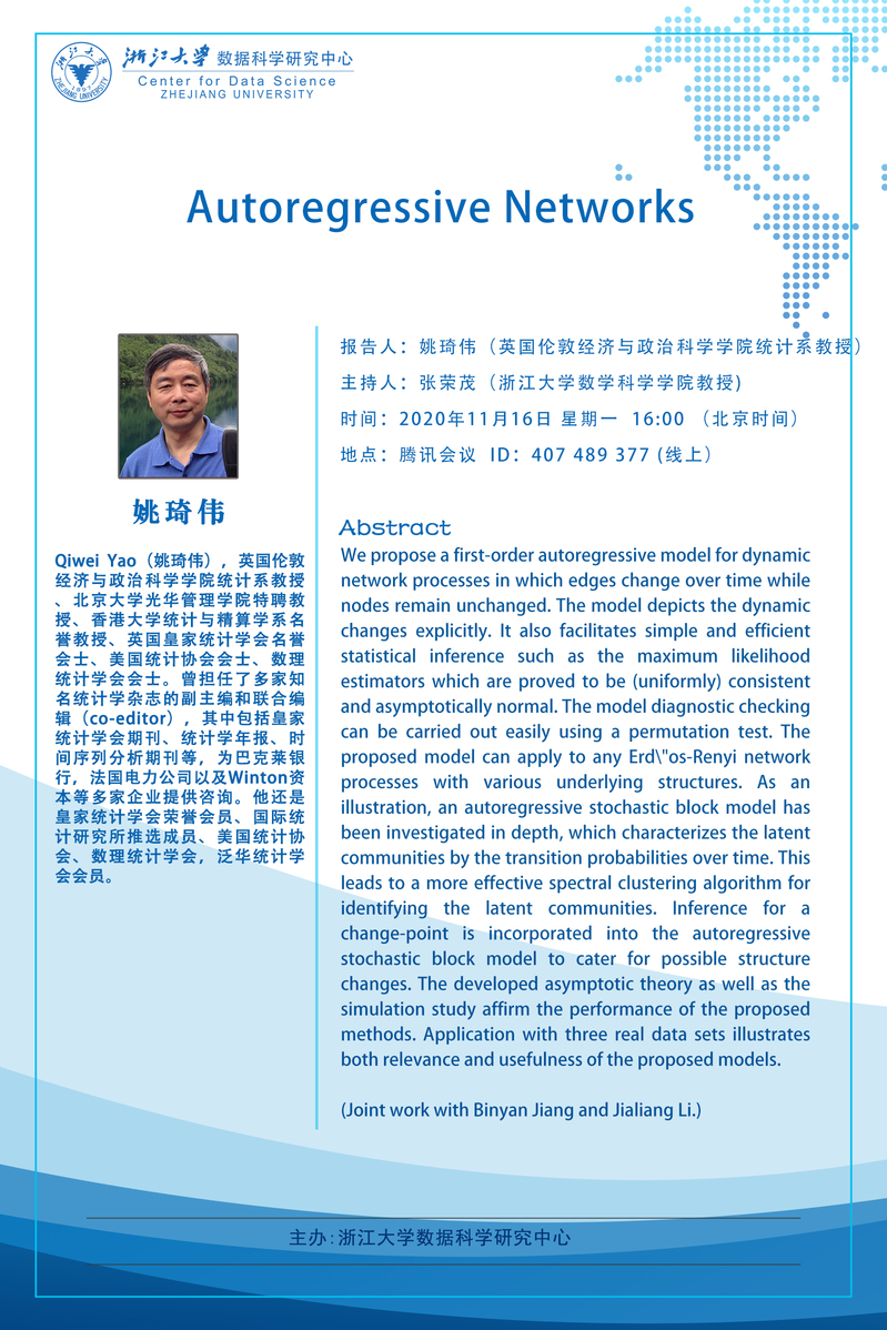 学术科研 学术团队 学术活动 学术会议 学术报告 讨论班 School Colloquium 信息公告 文件汇编 2020 华体会在线 > Autoregressive Networks 来源:华体会(中国) 发布时间:2020-10-22 489