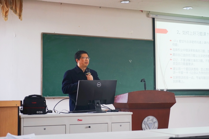 盛为民老师首先为各位助教明确了助教的工作内容,主要有习题讲解、批改作业、完成答疑等内容。盛老师就此次培训内容展开了三个问题——如何上好习题课?如何批改作业?如何答疑?通过自身多年丰富的教育经验,老师给大家进行了一一详细的指导。最后,盛为民老师为助教们提供了四点注意事项,主要包括在与学生相处时助教的角色定位以及事件处理等,助教们受益良多。