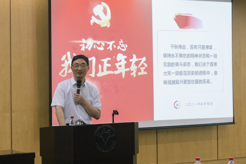 陈庆为师生党员做了题为《中国共产党为什么能》的党史学习教育报告,他结合党的百年发展史学习体会,深入浅出地阐释了我党取得伟大胜利的五个密码,包括科学的理论指导、坚定的理想信念、强大的组织优势、坚实的群众基础和彻底的自我革命。千秋伟业,百年只是序章,希望各位党员保持永不懈怠的精神状态和一往无前的奋斗姿态,投身基础科学前沿研究,为学院学科发展、党的建设和立德树人工作贡献全部力量,以实践奏响民族复兴更加壮丽的乐章。