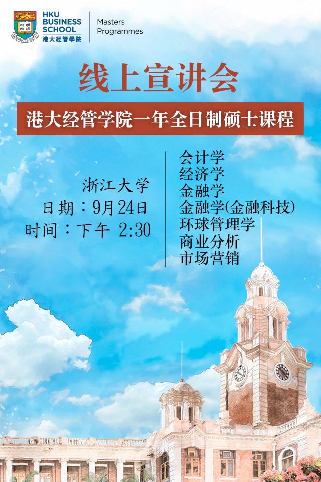 【对外交流| 宣讲会】香港大学经管学院硕士课程招生宣讲会通知
