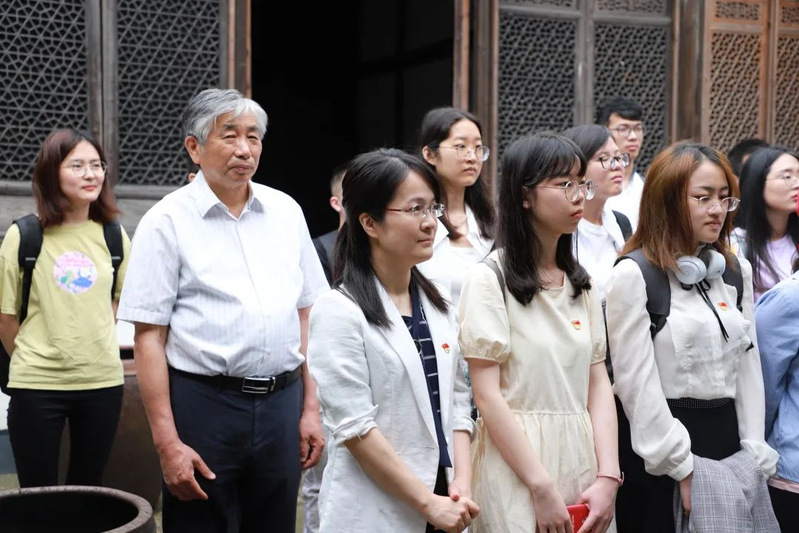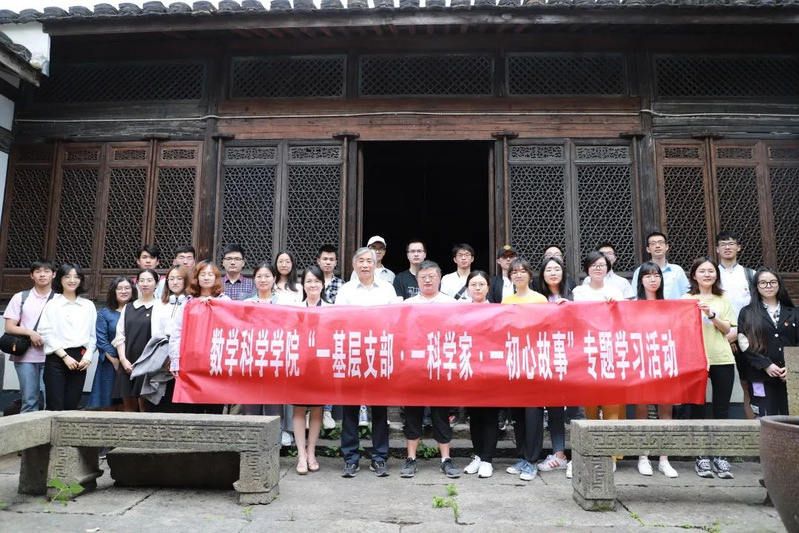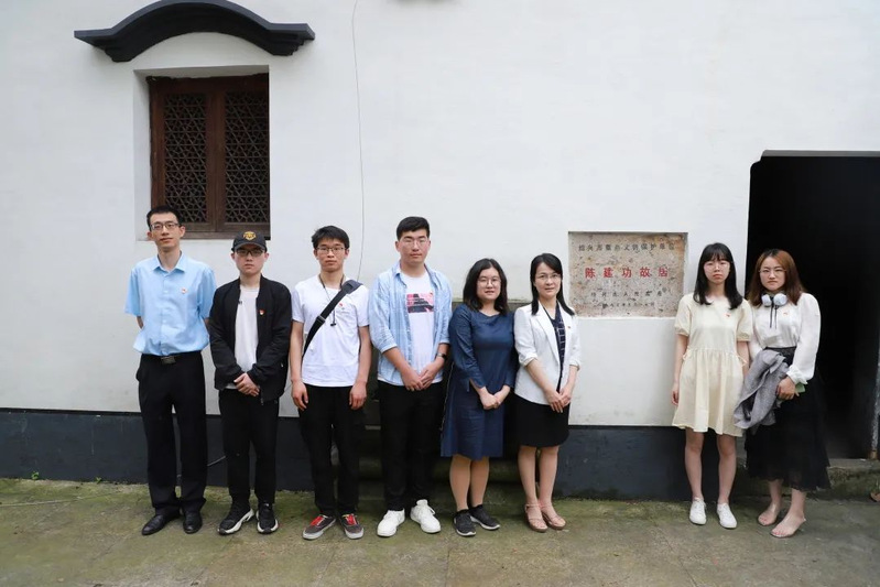 这是学院“一基层支部·一科学家·一初心故事”专题学习活动的现场。5月28日,学院“行走的党史学习教育课堂”来到了绍兴的陈建功故居,寻访浙大数学初心,赓续陈苏精神根脉。学院党委副书记、纪委书记孙凯,党委委员、数学系教工党支部书记贾厚玉及兼职组织员、退休教工第一党支部书记孙林法与学院“核心价值观进班级”讲师团成员、研究生预备党员、统计学本科生党支部学生党员代表共同参与此次活动。