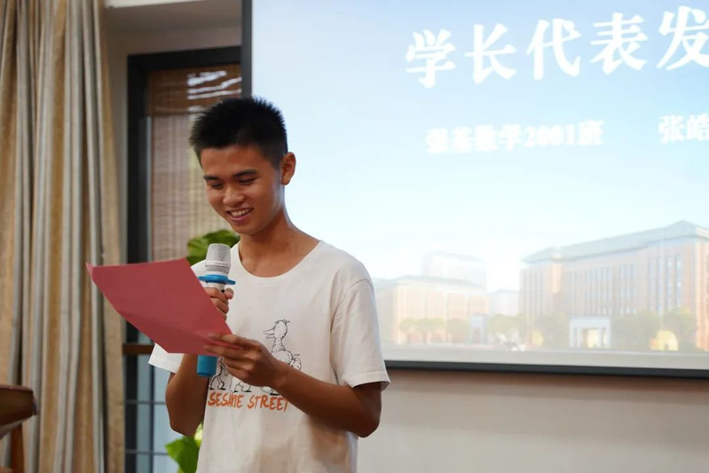 强基数学2001班张皓祥作为学长代表发言,分享了自己与新生之友的故事。从迷茫到清晰,大一学年探索数学的道路上新生之友发挥了至关重要的作用,为我们的大学生活乃至人生目标提供了宝贵的建议。