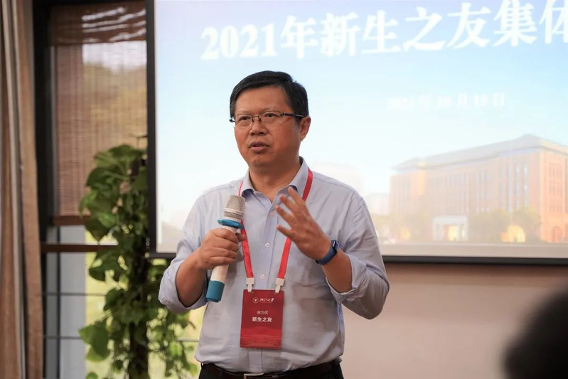 刘一峰教授代表数学高等研究院,结合自己在北京大学的和耶鲁大学的求学与工作经历,分享了新生之友对于同学们生涯规划的重要意义。同时,刘老师还分享了大学期间数学学习的经验和建议,为同学们未来四年的学业与科研提供了指导。