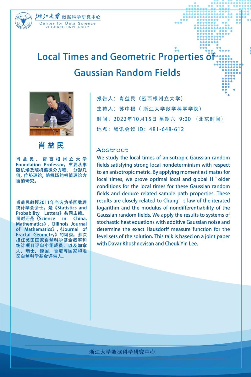 学术科研 学术团队 学术活动 学术会议 学术报告 讨论班 School Colloquium 信息公告 文件汇编 2022 华体会在线 > Local Times and Geometric Properties of Gaussian Random Fields 来源:华体会(中国) 发布时间:2022-10-15 213