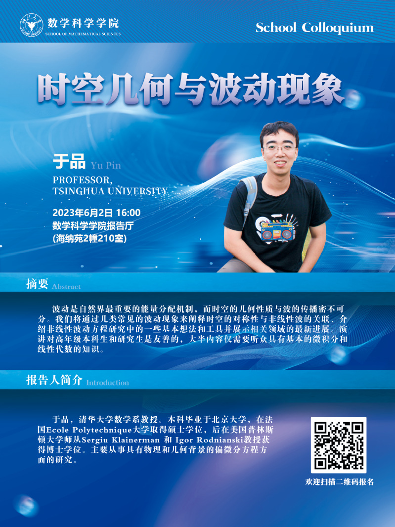 学术科研 学术团队 学术活动 学术会议 学术报告 讨论班 School Colloquium 信息公告 文件汇编 School Colloquium 华体会在线 > School Colloquium:时空几何与波动现象 来源:华体会(中国) 发布时间:2023-05-30 535