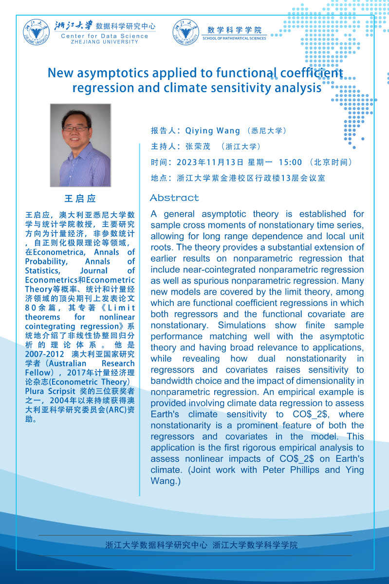 学术科研 学术团队 学术活动 学术会议 学术报告 讨论班 School Colloquium 信息公告 文件汇编 概率统计讨论班 华体会在线 > 概率统计讨论班——New asymptotics applied to functional coefficient regression and climate sensitivity analysis 来源:华体会(中国) 发布时间:2023-11-09 217