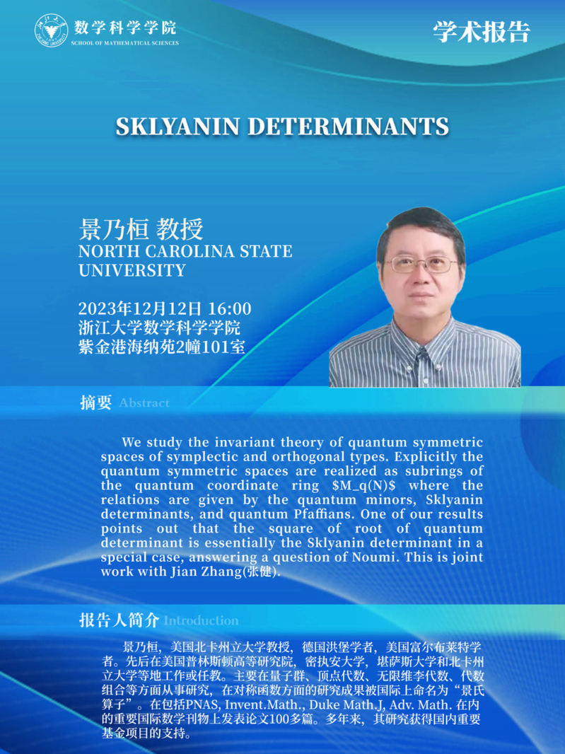 学术科研 学术团队 学术活动 学术会议 学术报告 讨论班 School Colloquium 信息公告 文件汇编 表示论与数论讨论班 华体会在线 > 表示论与代数讨论班——Sklyanin determinants 来源:华体会(中国) 发布时间:2023-12-05 405