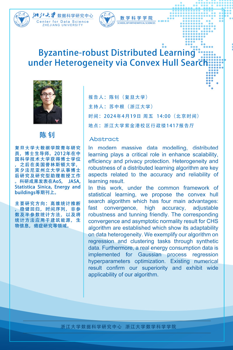 学术科研 学术团队 学术活动 学术会议 学术报告 讨论班 School Colloquium 信息公告 文件汇编 概率统计讨论班 华体会在线 > 概率统计讨论班——Byzantine-robust Distributed Learning under Heterogeneity via Convex Hull Search 来源:华体会(中国) 发布时间:2024-04-18 240