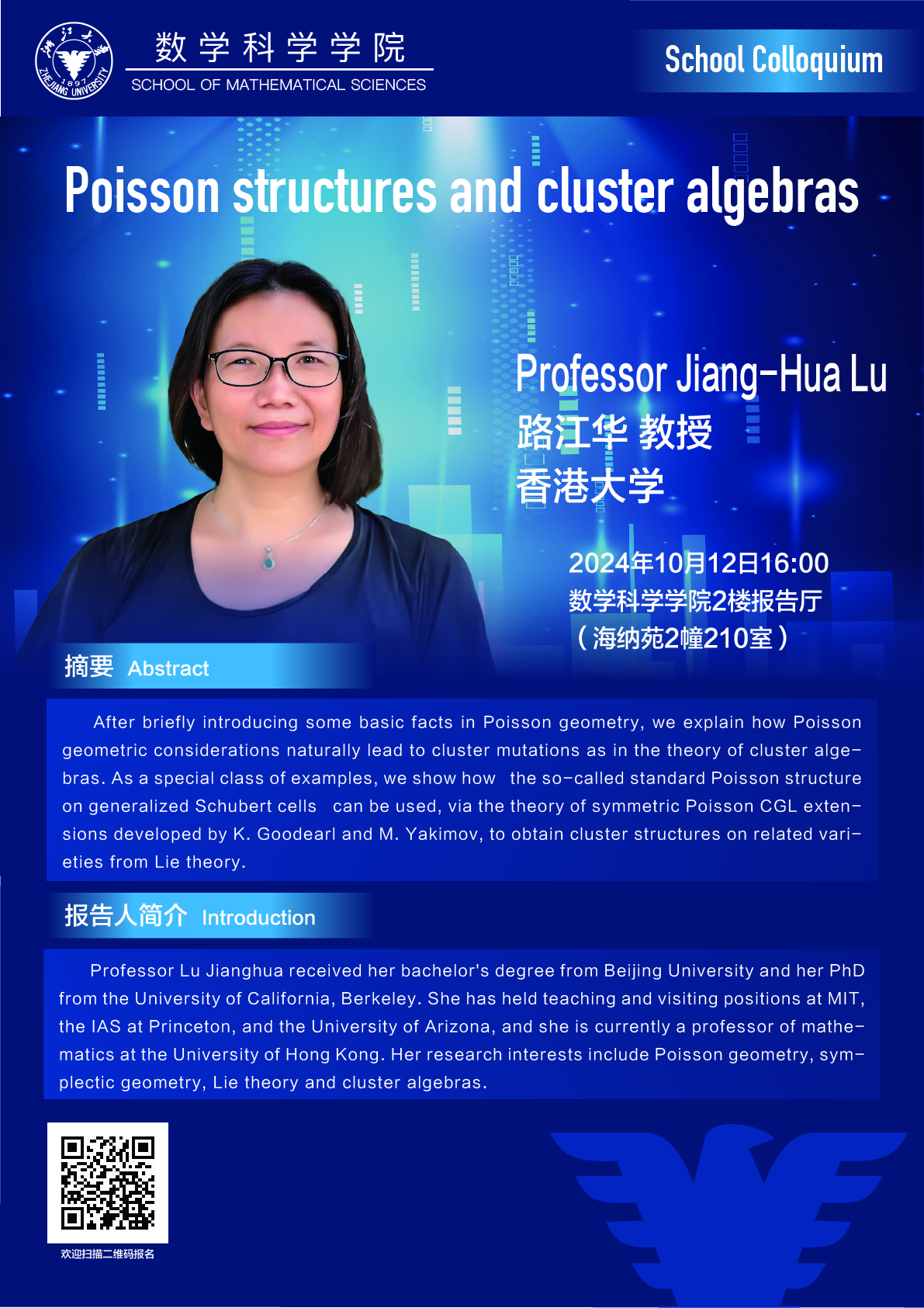 学术科研 学术团队 学术活动 学术会议 学术报告 讨论班 School Colloquium 信息公告 文件汇编 School Colloquium 华体会在线 > Poisson structures and cluster algebras 来源:华体会(中国) 发布时间:2024-10-09 68