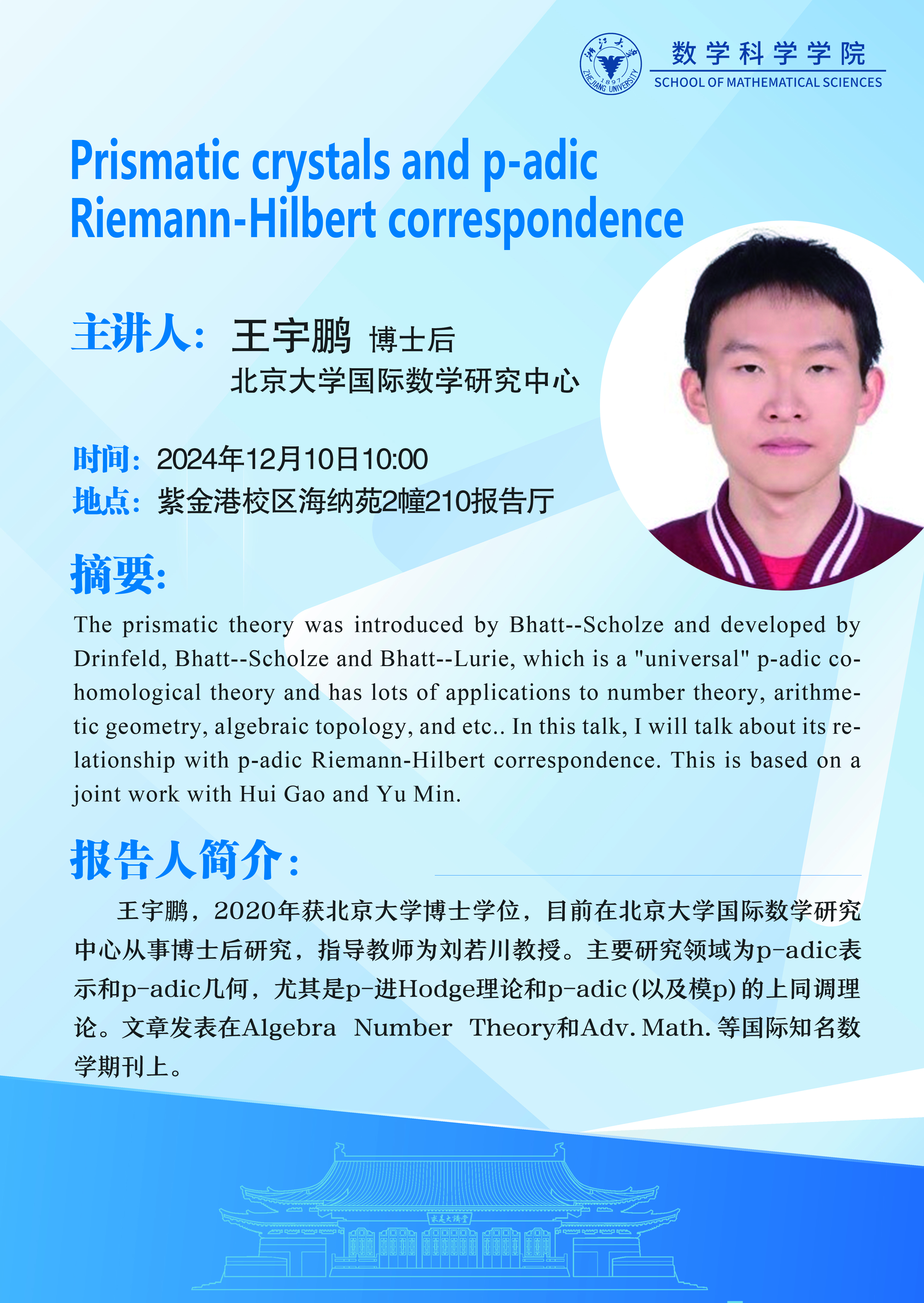 学术科研 学术团队 学术活动 学术会议 学术报告 讨论班 School Colloquium 信息公告 文件汇编 学术活动 华体会在线 > Prismatic crystals and p-adic Riemann-Hilbert correspondence 来源:华体会(中国) 发布时间:2024-12-05 219