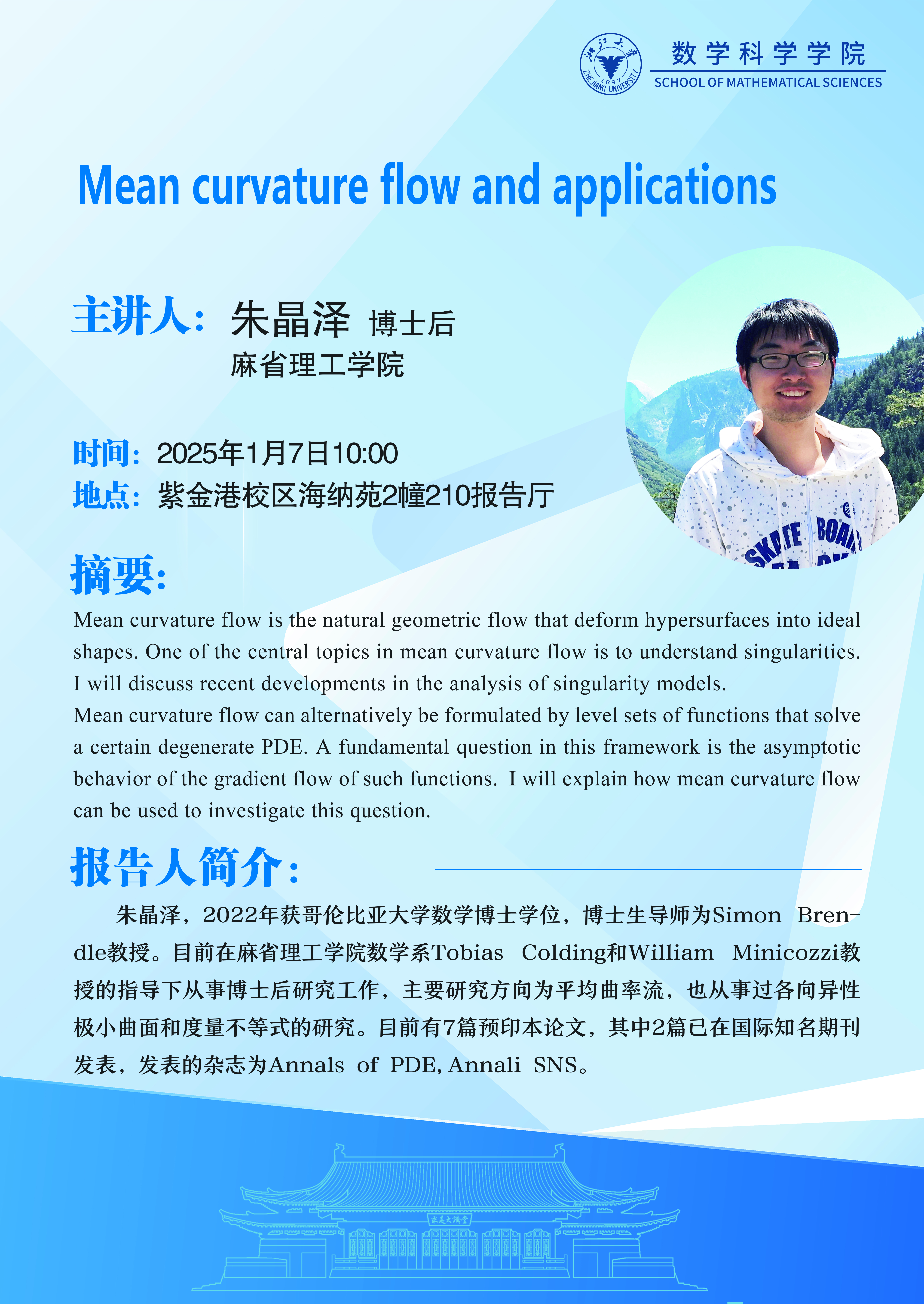 学术科研 学术团队 学术活动 学术会议 学术报告 讨论班 School Colloquium 信息公告 文件汇编 学术活动 华体会在线 > Mean curvature flow and applications 来源:华体会(中国) 发布时间:2024-12-31 253