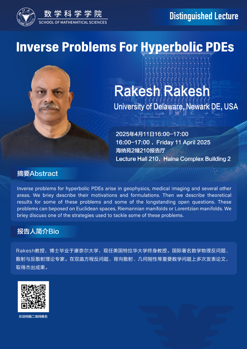 学术科研 学术团队 学术活动 学术会议 学术报告 讨论班 School Colloquium 信息公告 文件汇编 School Colloquium 华体会在线 > Distinguished Lecture——Inverse Problems For Hyperbolic PDEs 来源:华体会(中国) 发布时间:2025-04-07 18