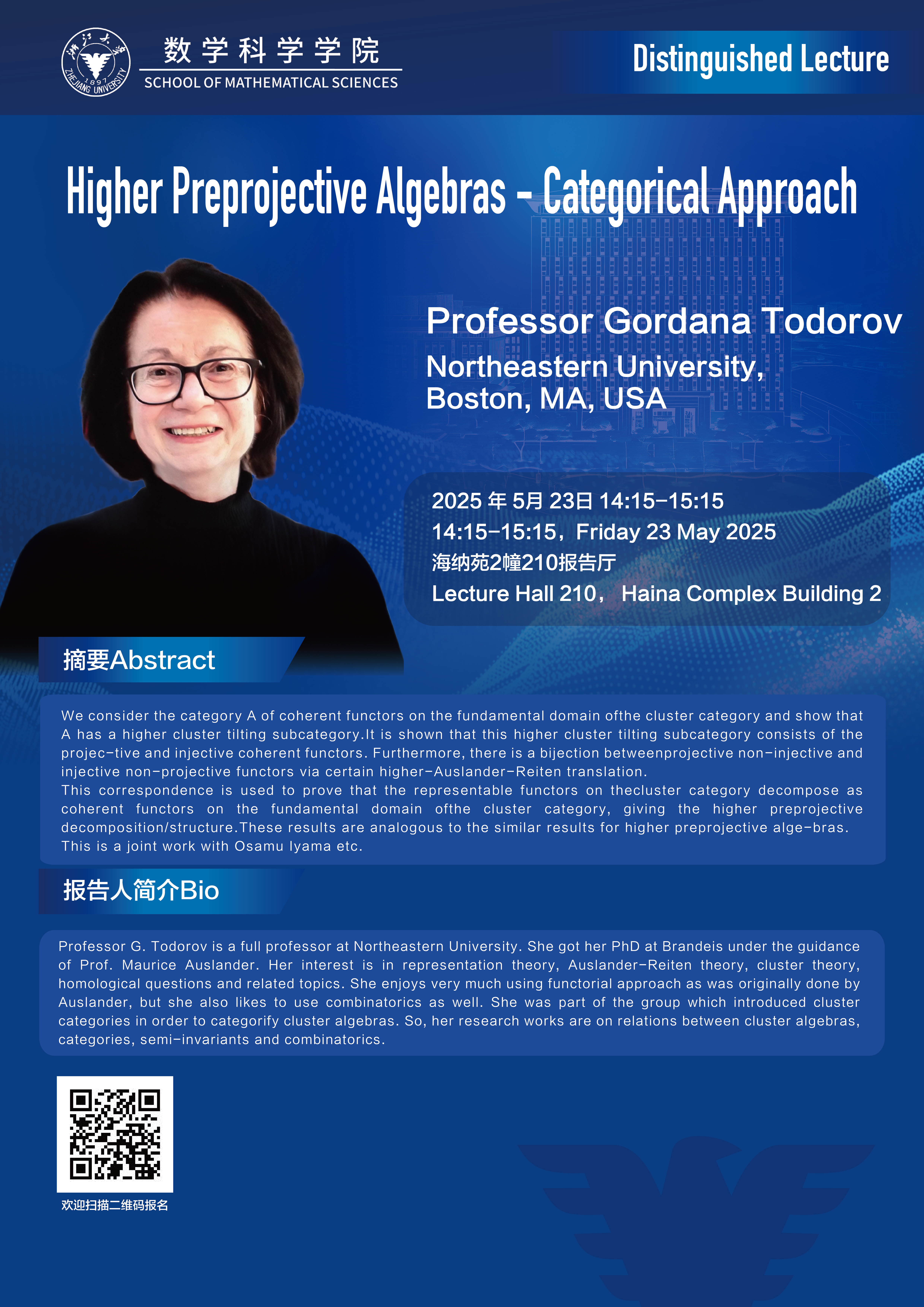 学术科研 学术团队 学术活动 学术会议 学术报告 讨论班 School Colloquium 信息公告 文件汇编 School Colloquium 华体会在线 > Distinguished Lecture——Higher Preprojective Algebras-Categorical Approach 来源:华体会(中国) 发布时间:2025-05-19 222