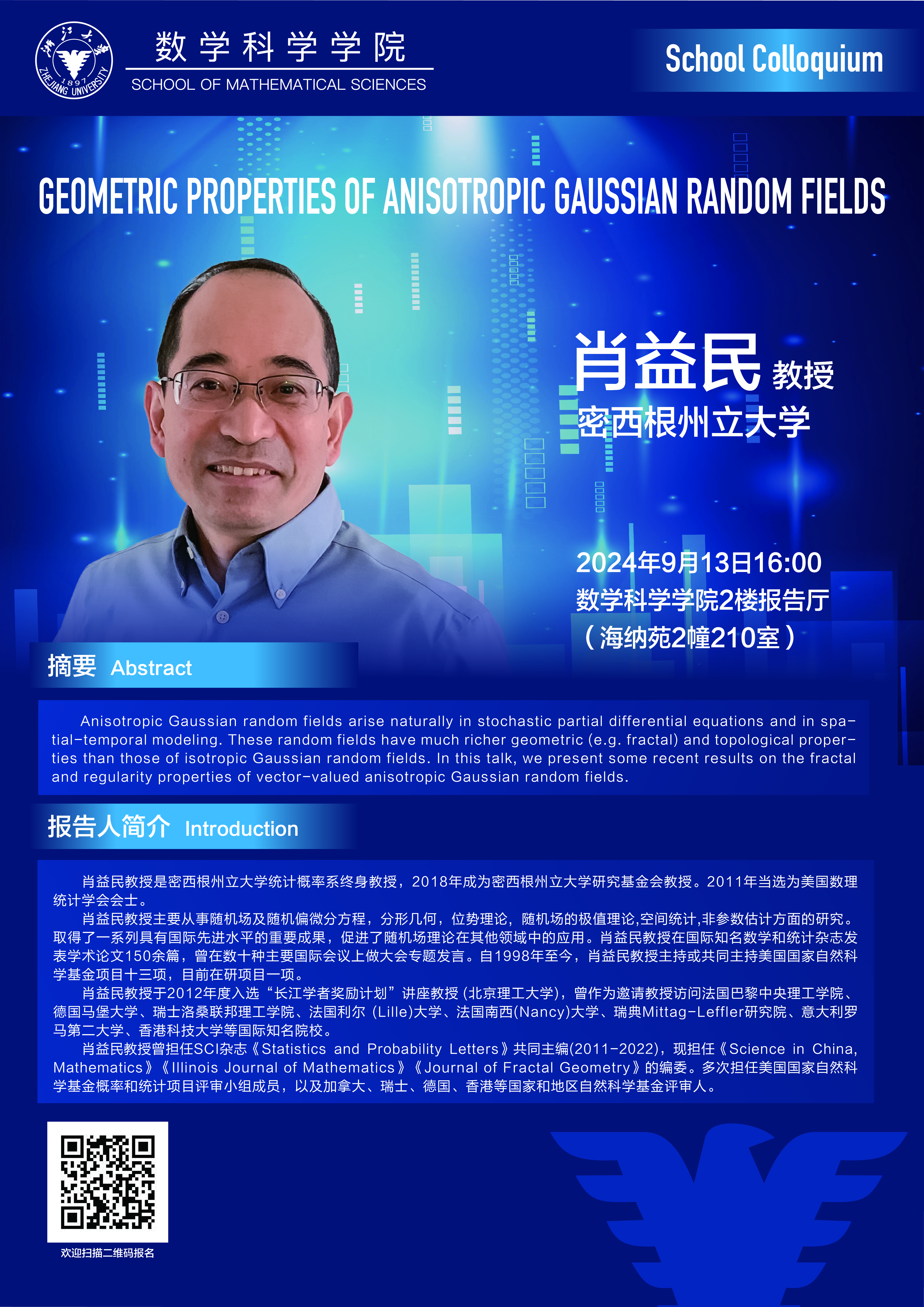 Seminars Seminars School Colloquium Conferences Position : homepage EVENTS Seminars School Colloquium——GEOMETRIC PROPERTIES OF ANISOTROPIC GAUSSIAN RANDOM FIELDS 2024-09-13 16:00:11 2024-09-13 16:00:11 2024-09-13 16:00:11 Speaker : Time : 2024-09-13 16:00:11 Location : 210 Haina Complex Building 2 Date: 2024-09-06 Visitcount : 85