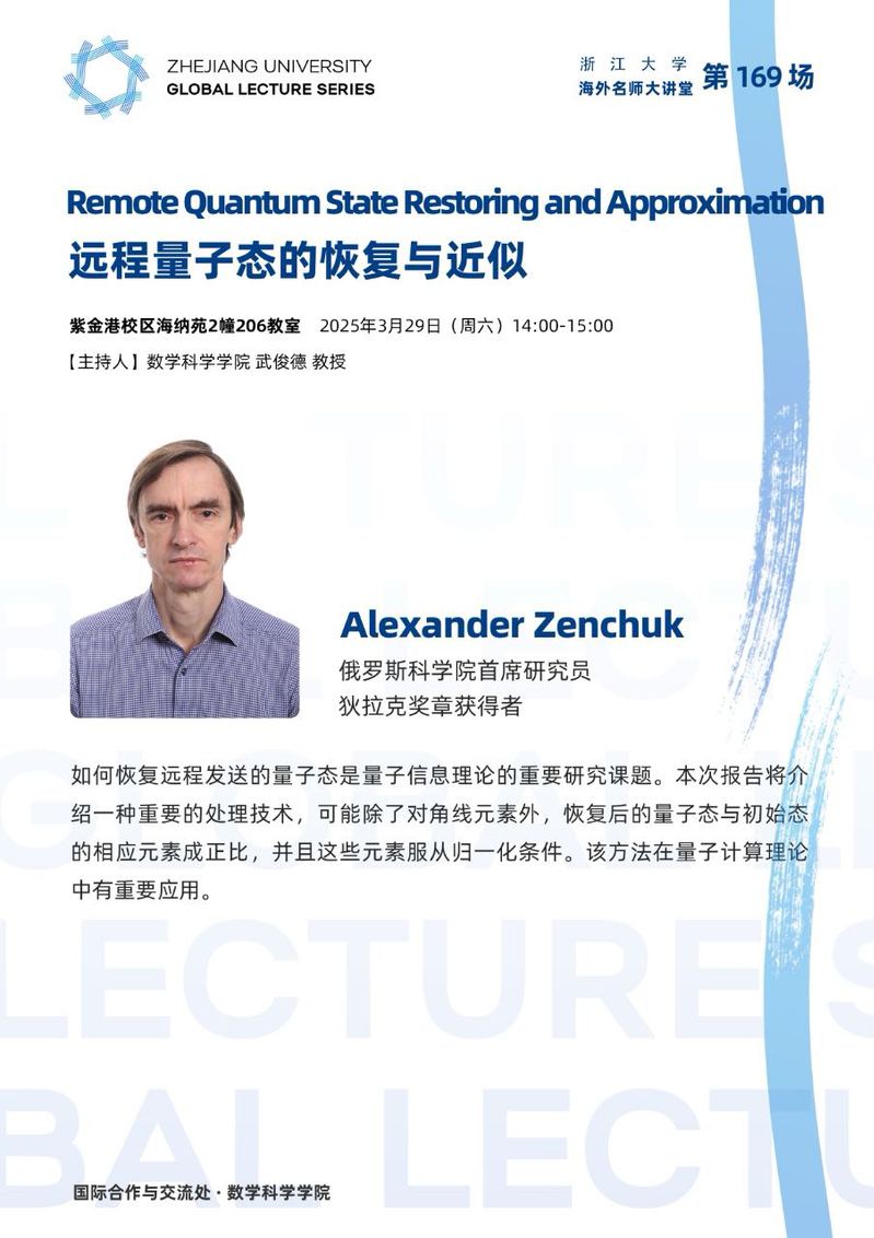 海外名师大讲堂——Remote quantum state restoring and approximation