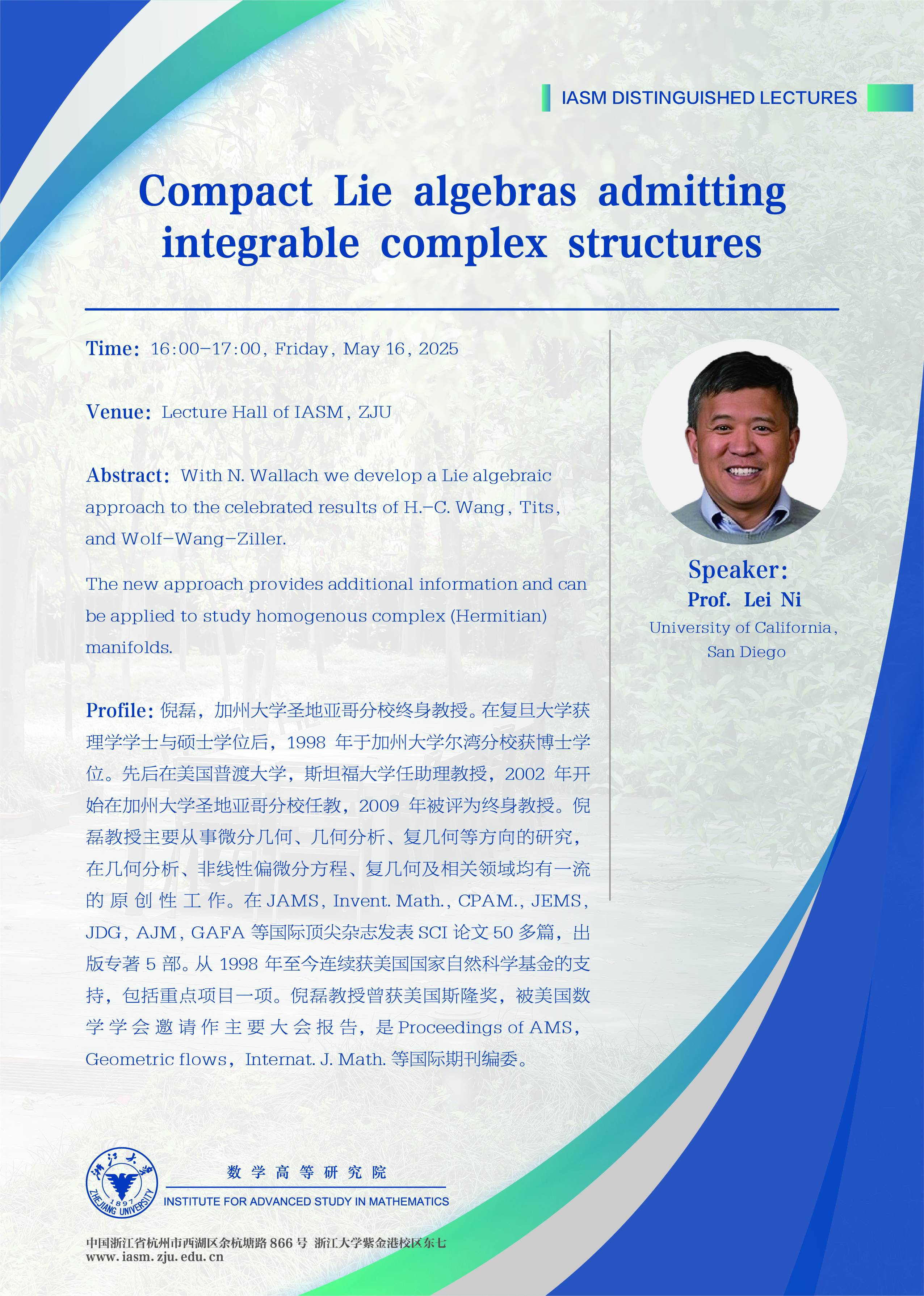 IASM Distinguished Lectures——Compact Lie algebras admitting integrable complex structures